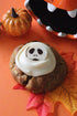 Cookie met chocolate chips, gevuld met honing frosting en getopt met witte chocolade en een schim geïnspireerd op Silence of the lambs!